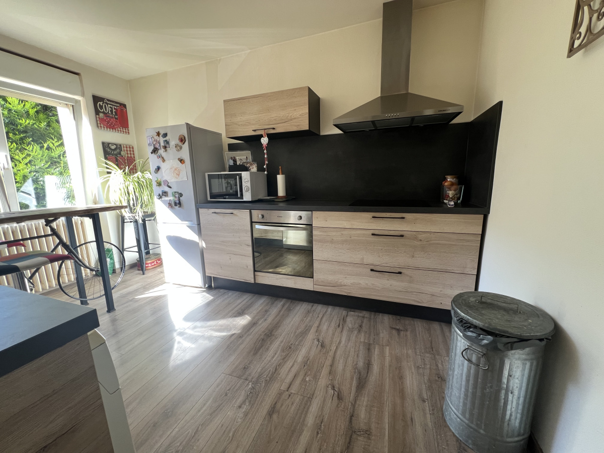Située dans une petite impasse tranquille, maison mitoyenne d'un seul côté comprenant : entrée, cuisine (mobilier, hotte) ouverte sur salon et séjour lumineux donnant accès direct au jardin, toilettes, garage et cellier. A l'étage, 4 chambres dont 2 avec grands placards, salle d'eau (douche), toilettes. Chauffage électrique au sol au RDC et convecteurs à l'étage. Disponible dès le mois de Mai 2026. Visites après réception des dossiers de candidature.