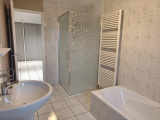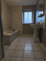 A HAROL, Longeroye, village paisible, bel et grand F5 de 144 m2 comprenant : grand hall d' entrée avec placards, cuisine (non équipée), spacieux salon-séjour, 3 chambres dont une avec placard, salle de bain (baignoire et cabine de douche), toilettes séparés et lave-main, cellier avec placards. Chauffage central gaz. Possibilité garage avec accès depuis l'immeuble (supplément de 43.00 €/mois). Possibilité jardin face à l'immeuble pour potager notamment. Tranquillité assurée