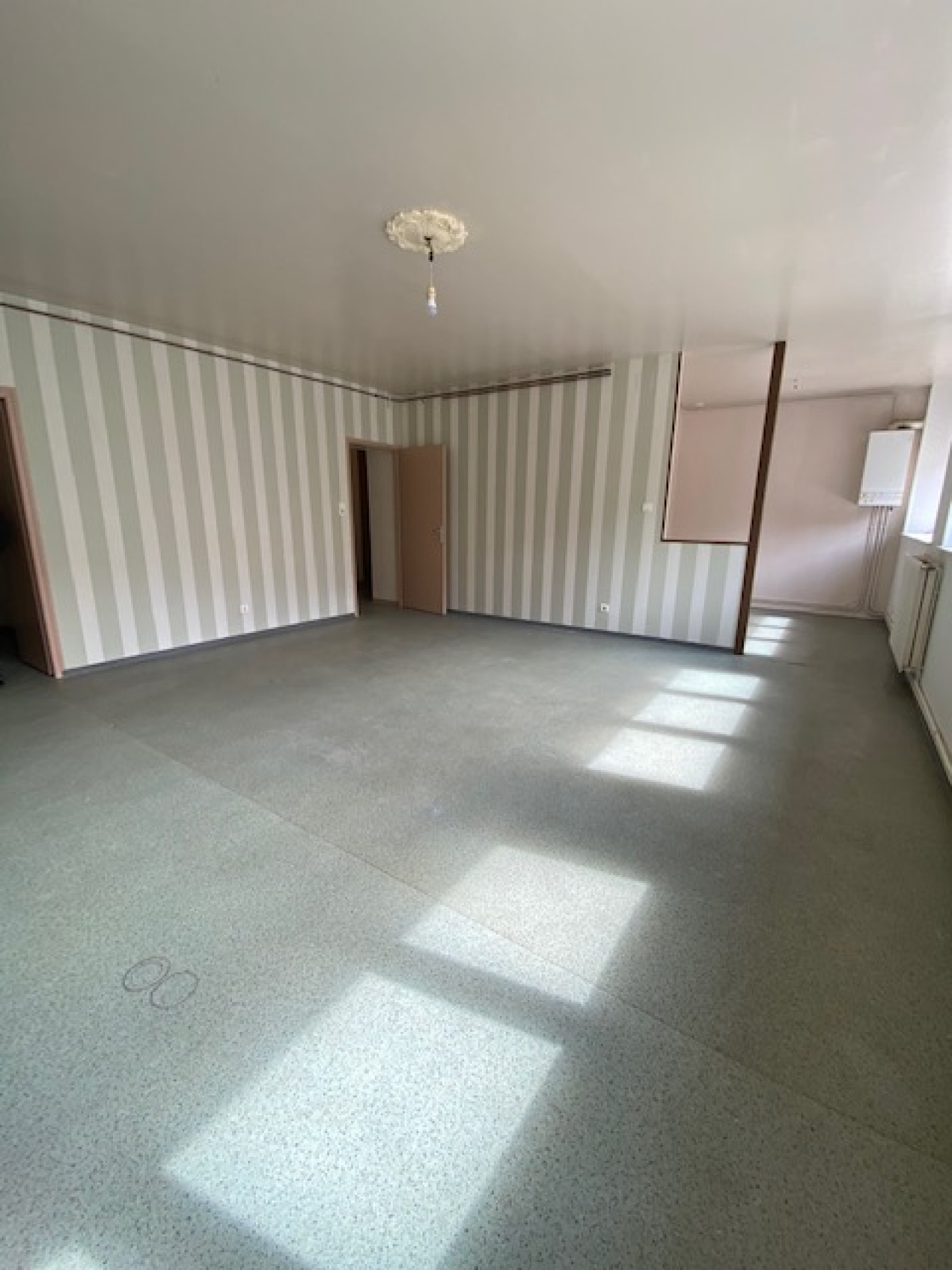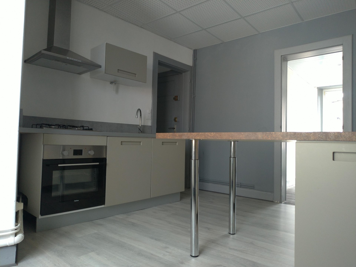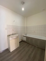 Grand appartement au rez-de-chaussée, proche centre-ville comprenant : entrée, toilettes, cuisine ouverte sur salon et séjour, débarras, salle de bain (baignoire), 3 chambres. Chauffage central gaz. Parking à l'arrière du bâtiment. Disponible courant Octobre 2024