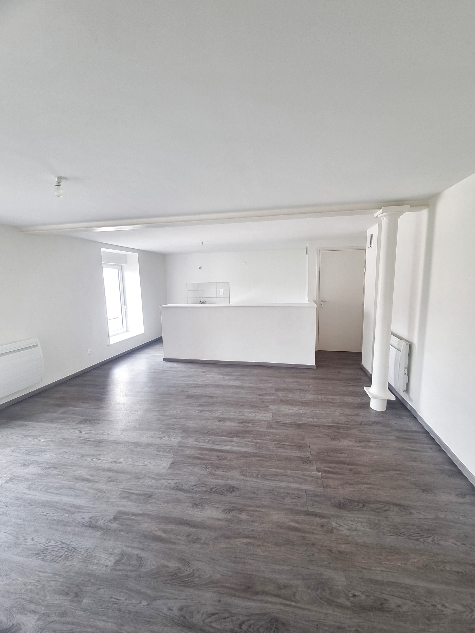 Appartement entièrement rénové et isolé comprenant : cuisine ouverte sur séjour, salle de bain (baignoire), toilettes séparés (sanitaires à l'état neuf), chambre. Chauffage individuel électrique récent. Disponible en août 2025