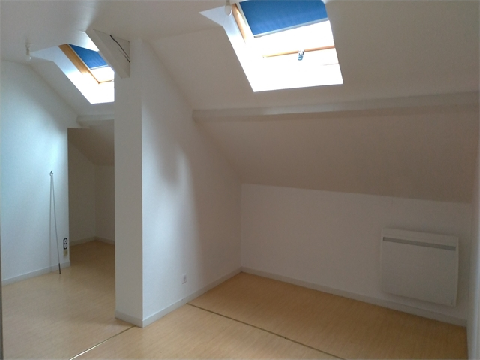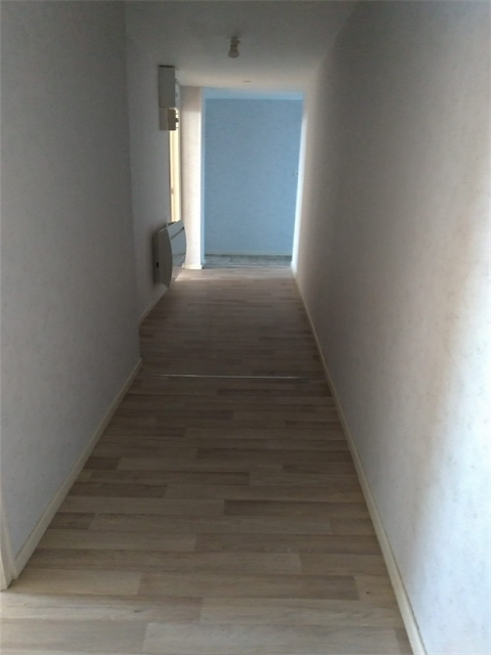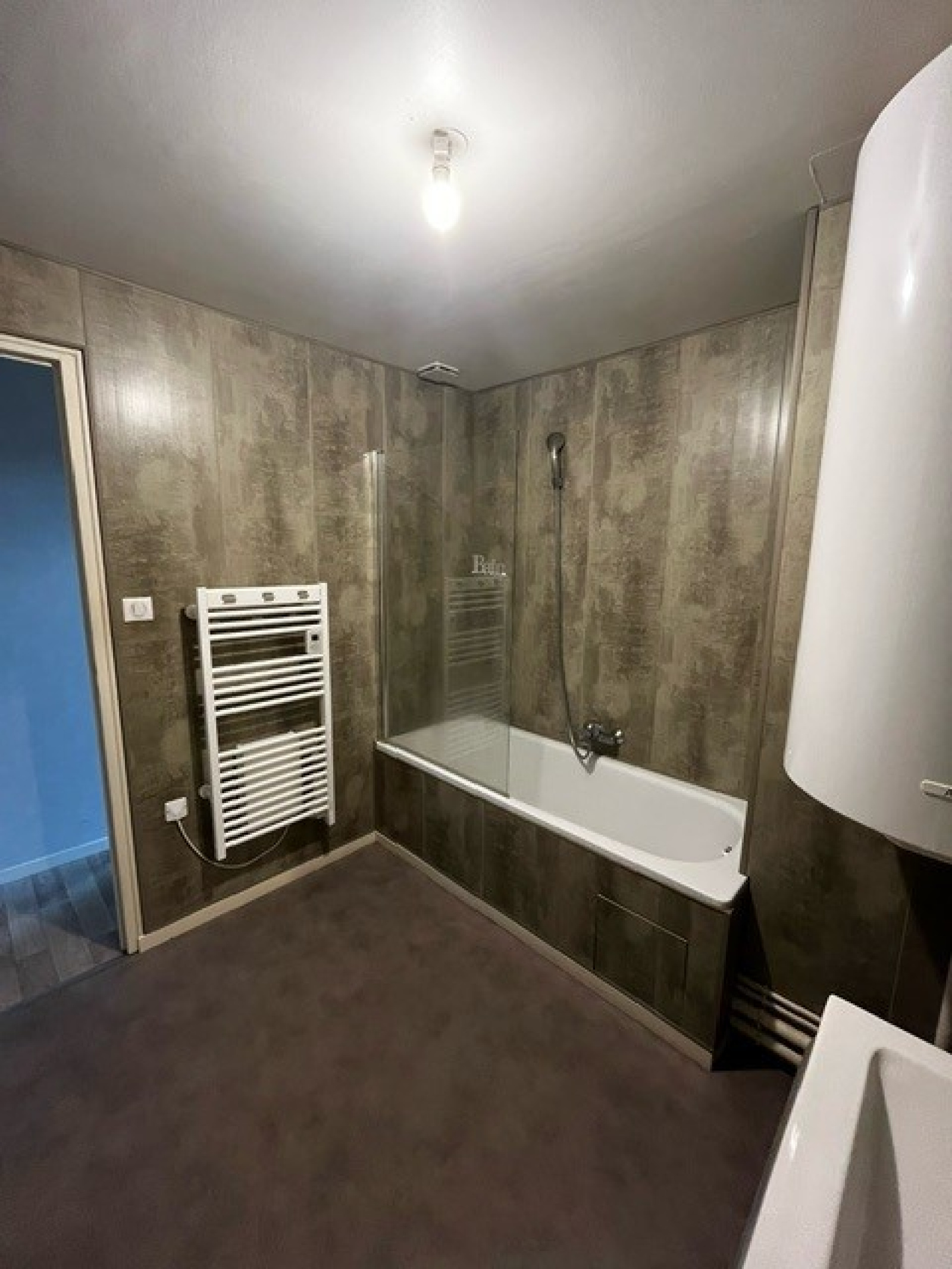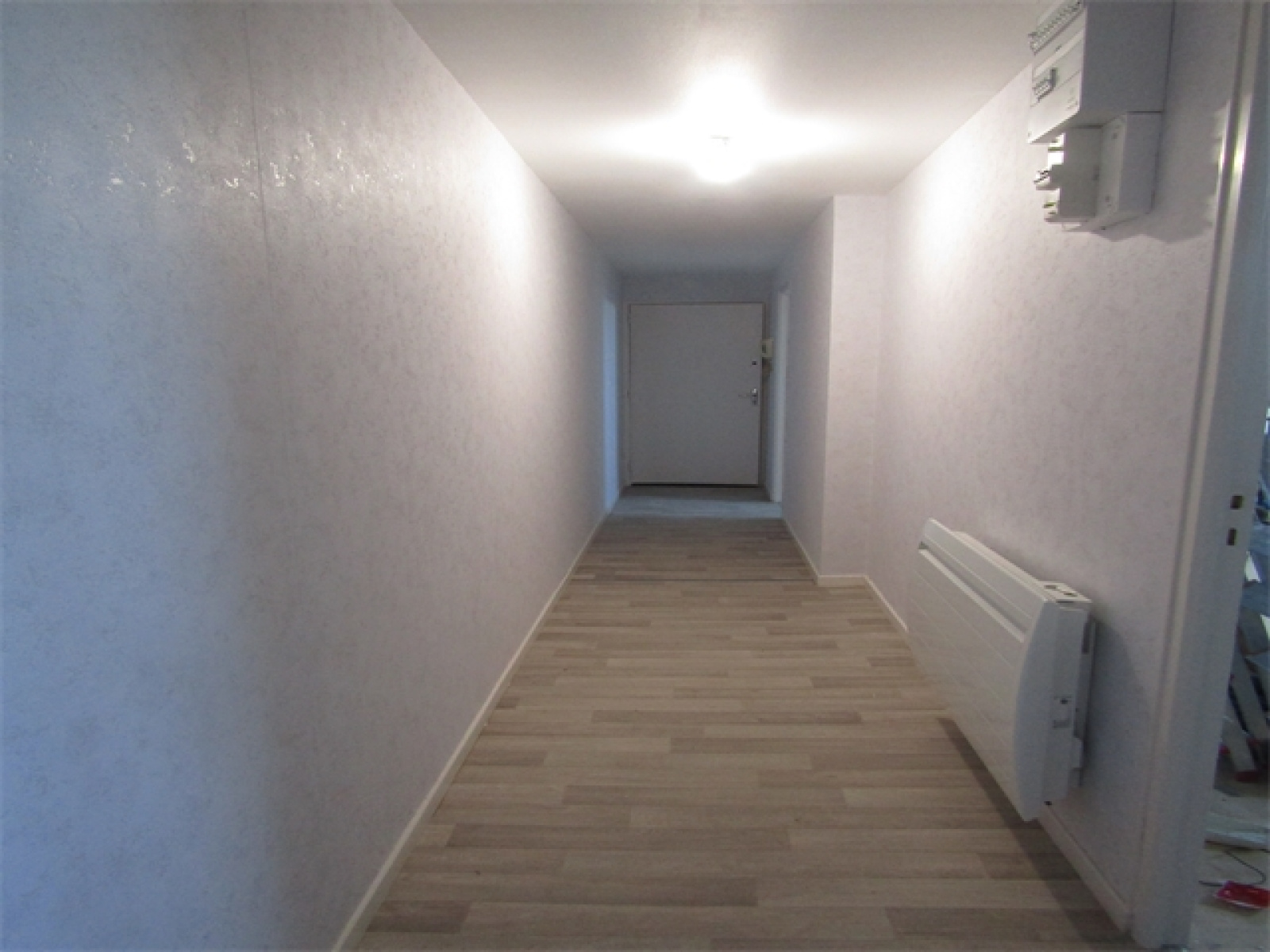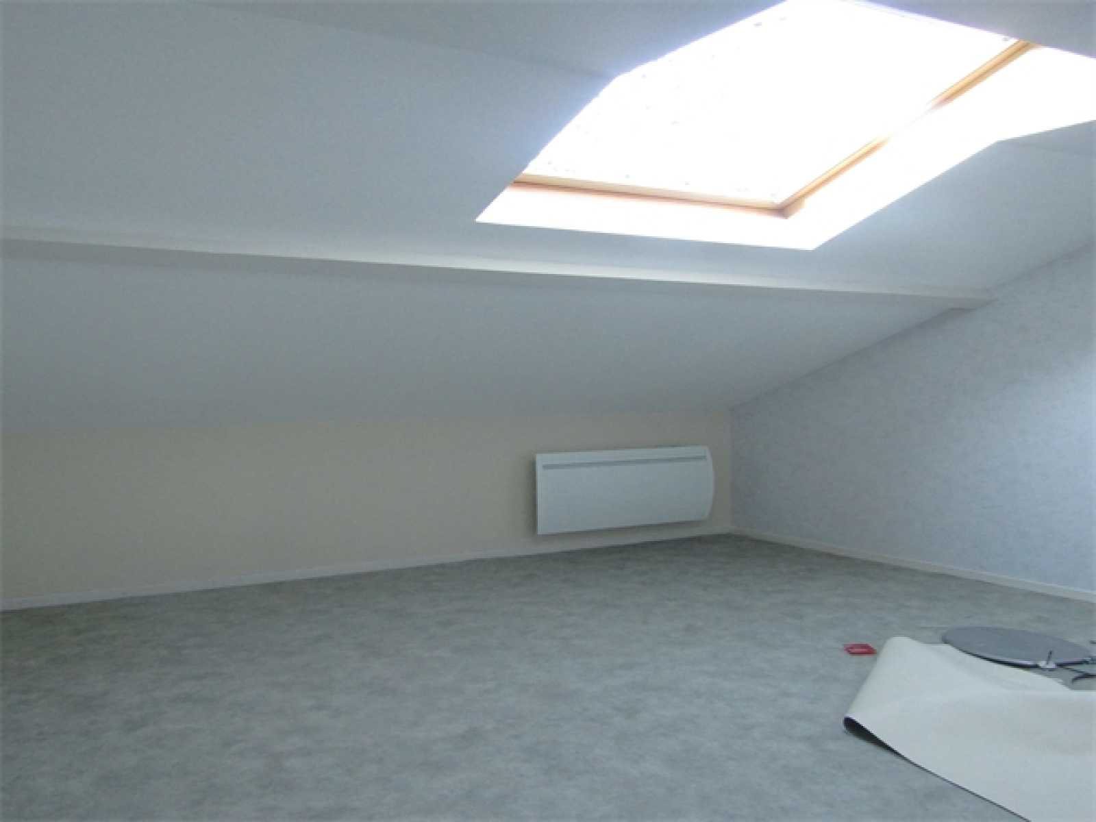 Au 4ième et dernier étage au centre-ville, appartement spacieux et rénové comprenant : Entrée, cuisine équipée (plaque de cuisson gaz, hotte), salon et séjour, chambre, salle de bain (baignoire), toilettes séparés. Chauffage électrique rfécent. Disponible début décembre 2025