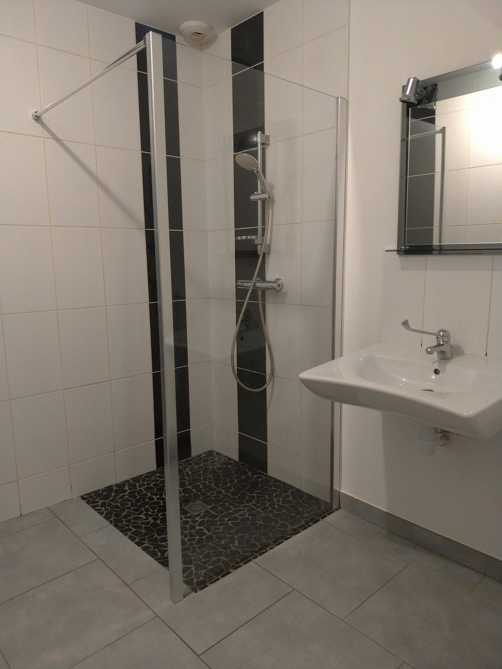 Beau F3 avec cuisine semi équipée en RDC à proximité de la Place de l'Espée comprenant : entrée, cuisine semi équipée (hotte, mobilier) ouverte sur séjour, dégagement donnant accès aux sanitaires et à la salle d'eau (douche à l'italienne), 2 chambres, toilettes séparés, buanderie. Chauffage central gaz. Loyer conventionné soumis à ressources. Disponible courant décembre 2025