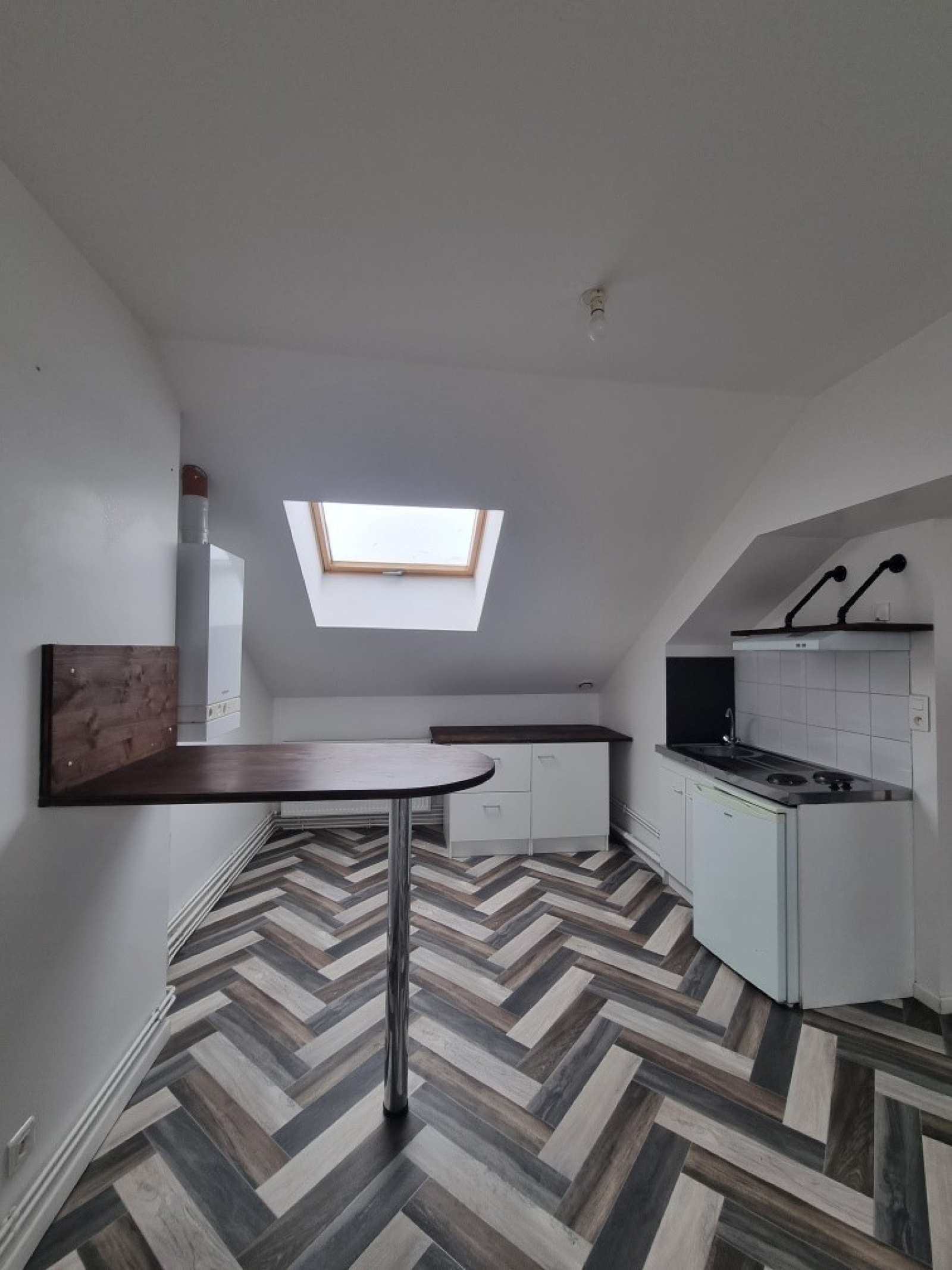 Bel appartement au dernier étage d'un immeuble calme situé Place de l'Espée comprenant : cuisine ouverte sur séjour, coin nuit, salle de bain (baignoire) avec toilettes. Chauffage individuel gaz. Disponible dès la mi décembre 2025