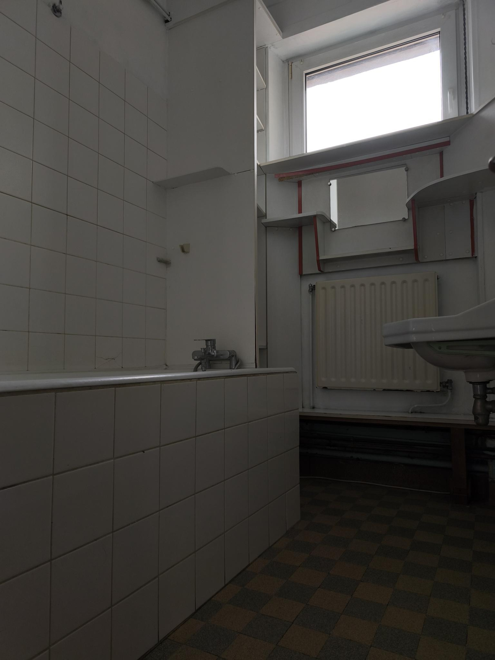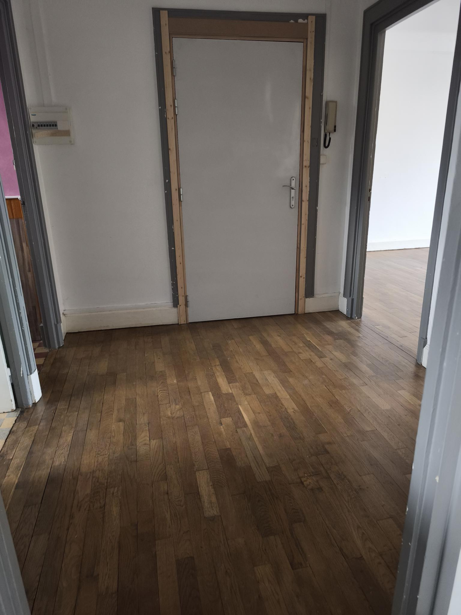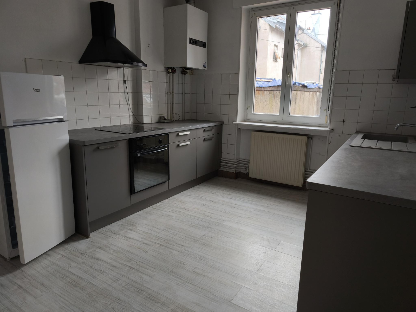 Aux portes des commerces, F2 au 1er étage comprenant : entrée, cuisine équipée (plaque de cuisson, four, hotte, réfrigérateur), séjour, salle de bain, toilettes séparés, chambre. Chauffage central gaz. Disponible de suite