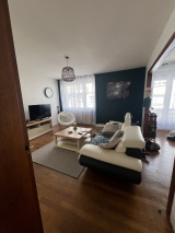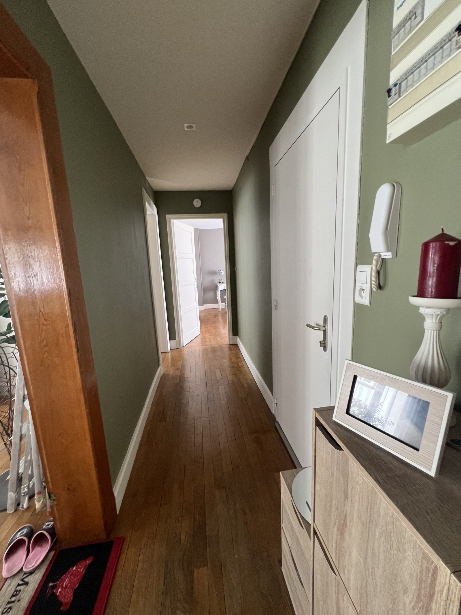 Au sein d'une copropriété bien entretenue, bel appartement avec parquets de chêne comprenant : hall d'entrée avec placard, grand salon et séjour très lumineux avec balcon, cuisine équipée (plaque de cuisson, hotte four), deux belles chambres, salle d'eau, toilettes séparés. Place de partking dans cour intérieure privée. Idéalement situé en plein centre-ville, proche de toutes commodités. Chauffage central gaz. Disponible mi mai 2026