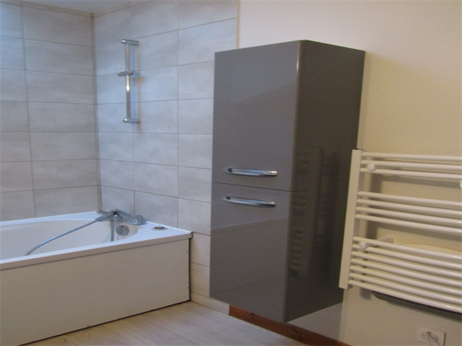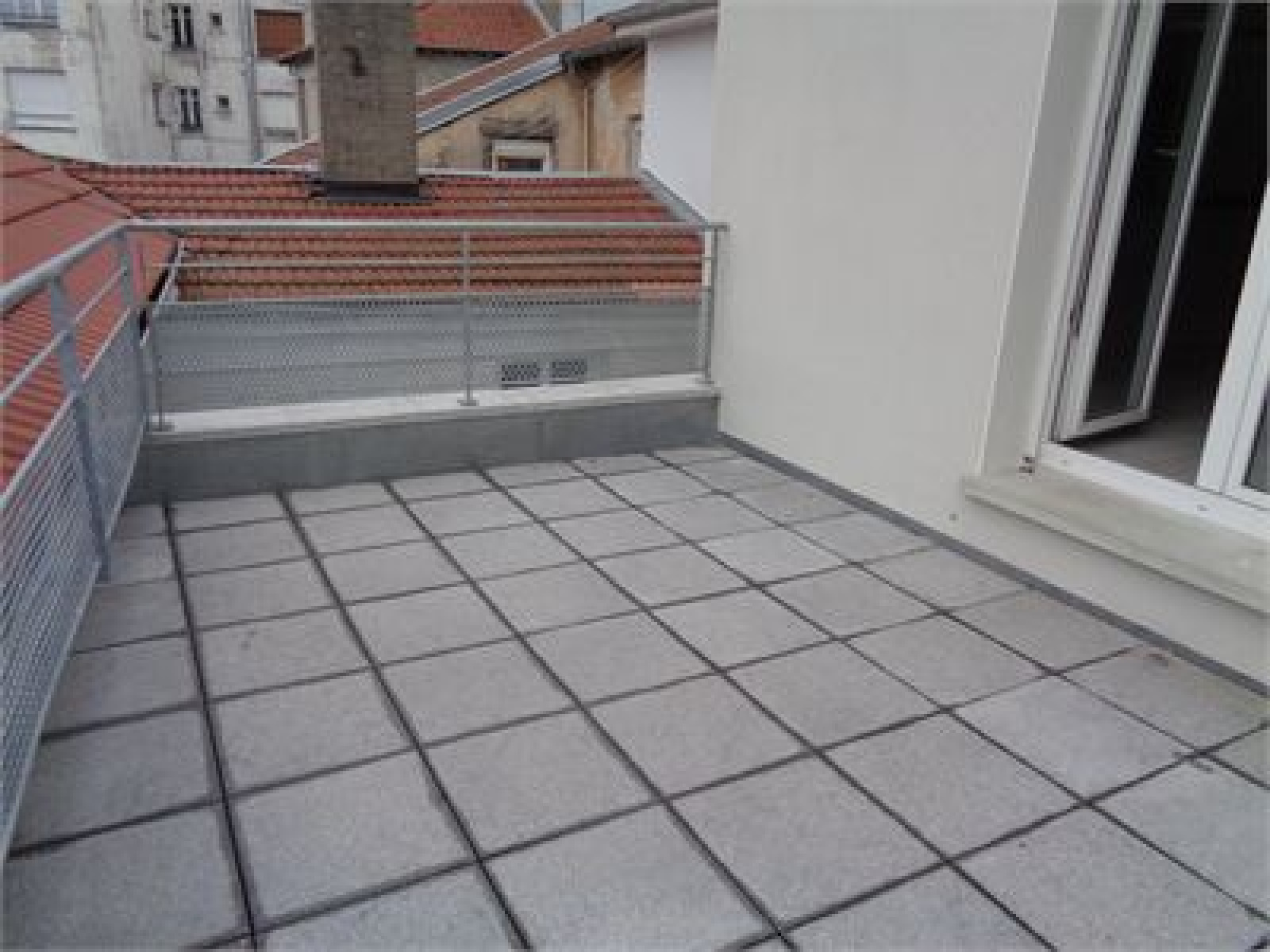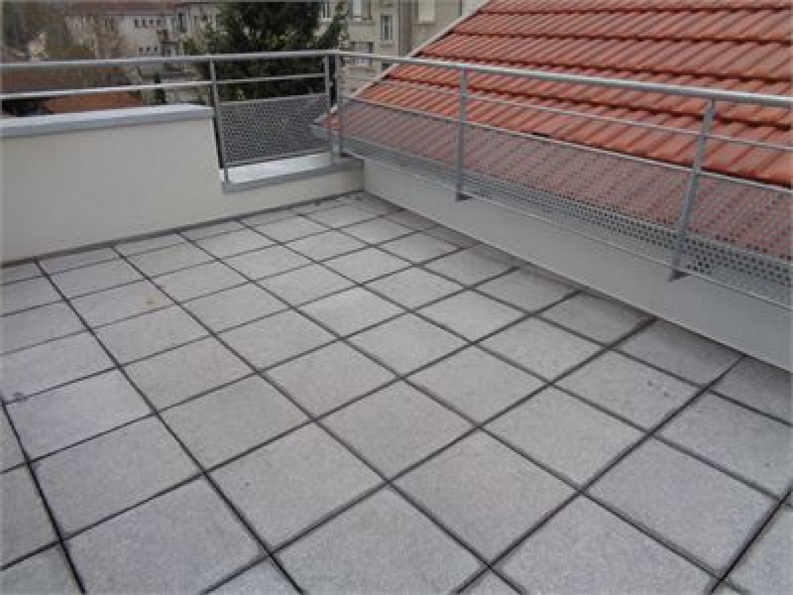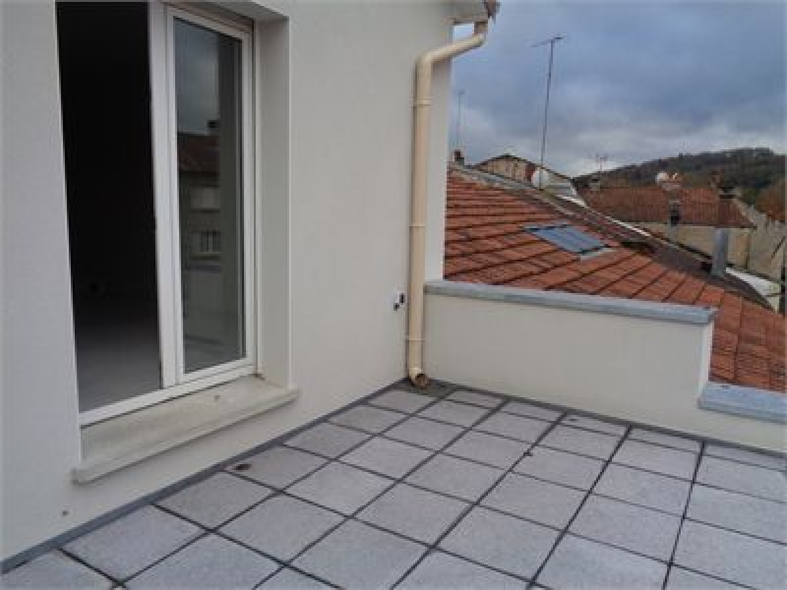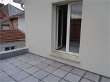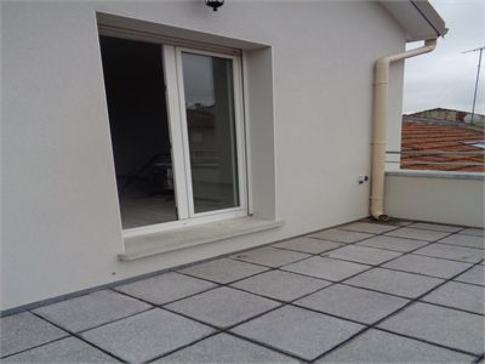 A quelques pas du centre-ville, F2 avec toit terrasse au 2Ième et dernier étage comprenant : Cuisine équipée (plaque de cuisson, four, hotte) ouverte sur grand salon-séjour avec accès toit terrasse, salle de bain (baignoire), toilettes séparés, une chambre avec dressing. Cave. Chauffage individuel électrique. Disponible fin septembre 2025
