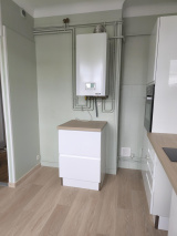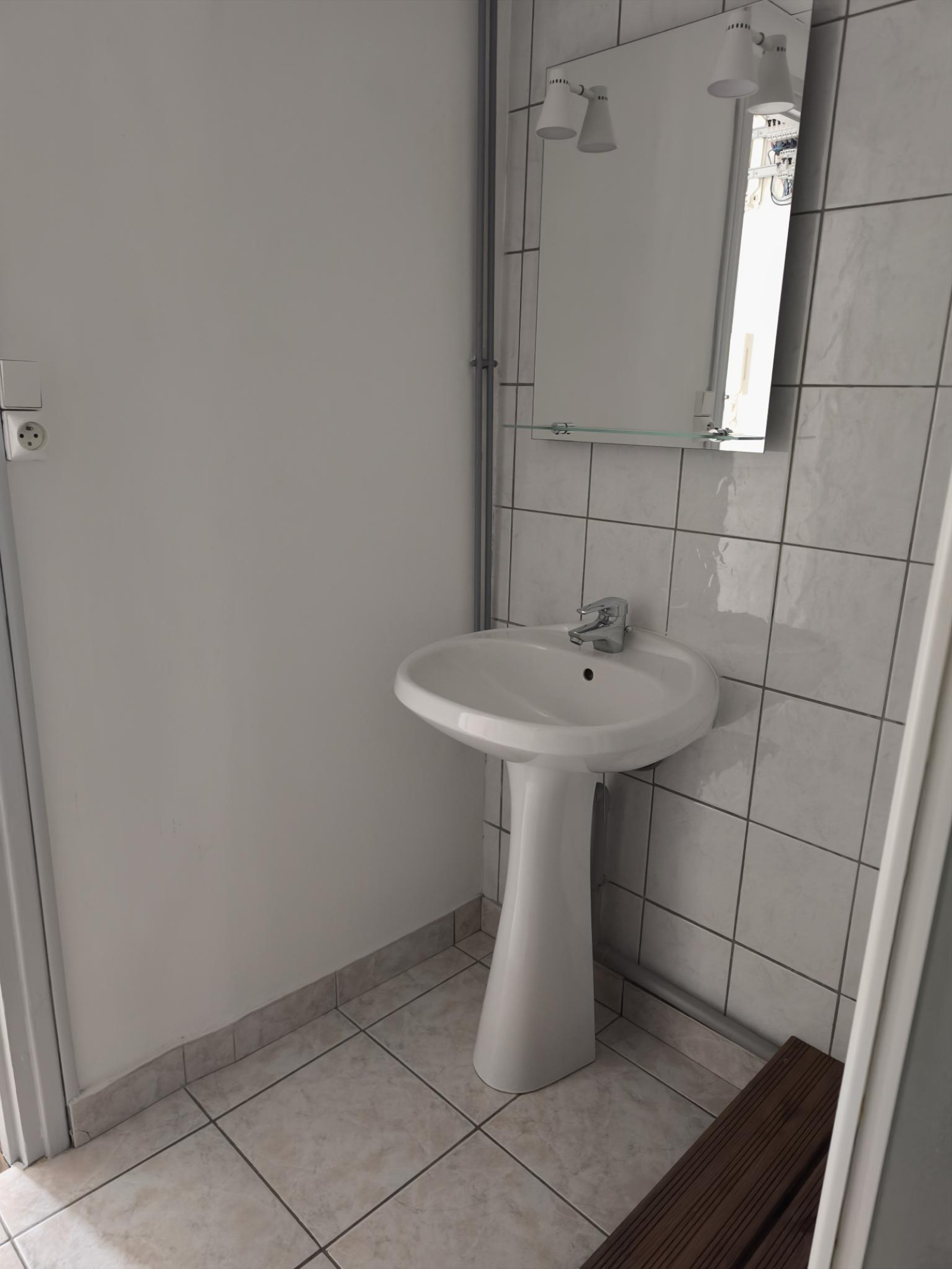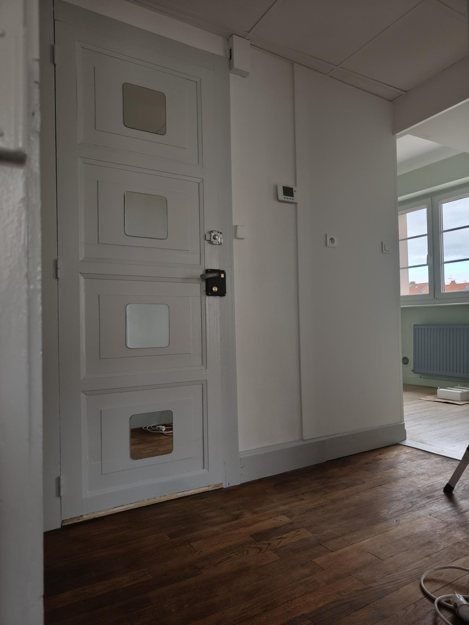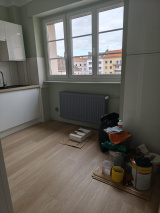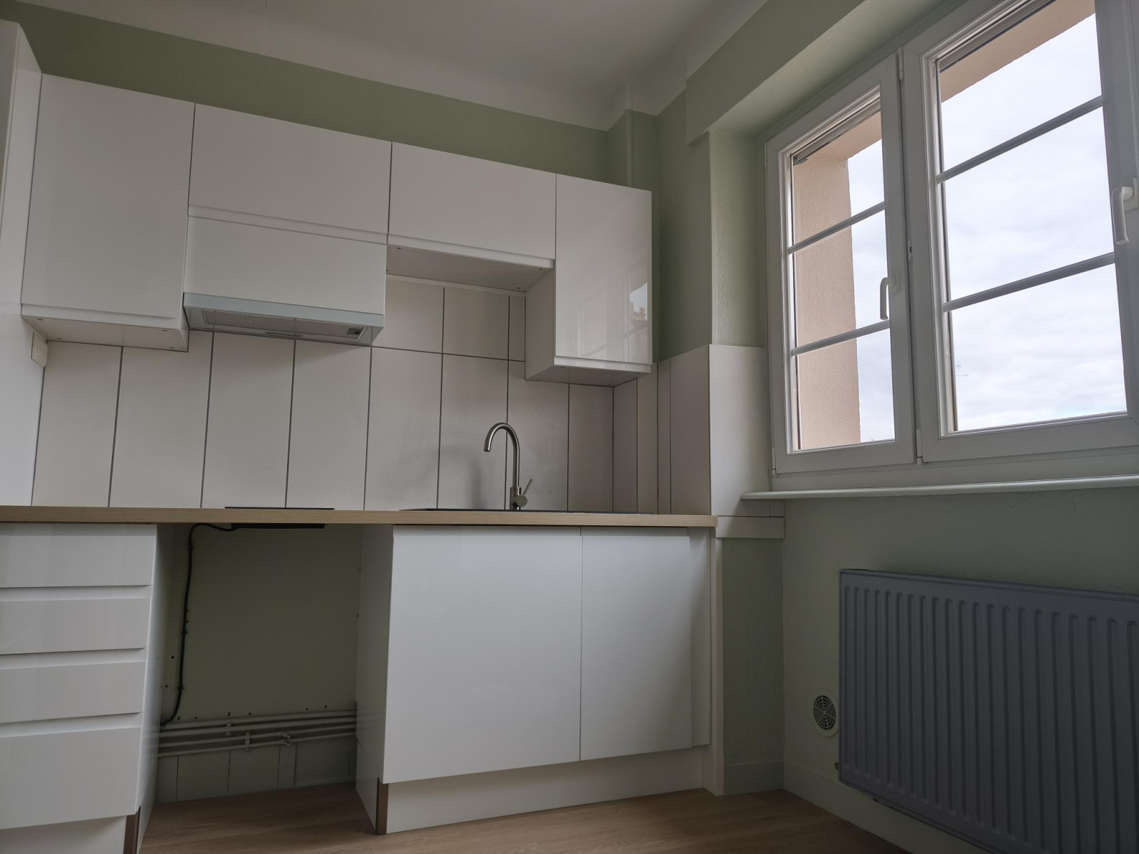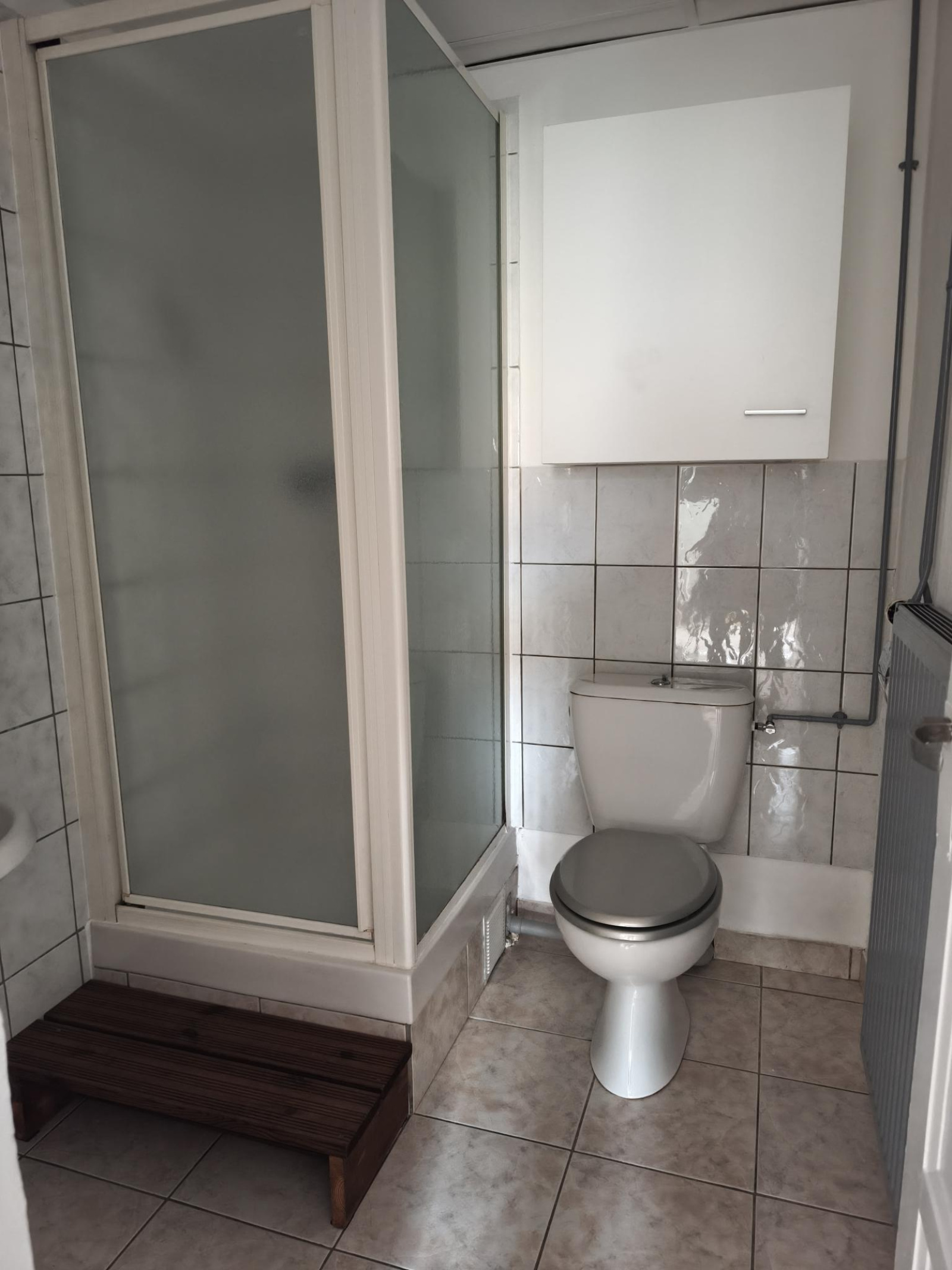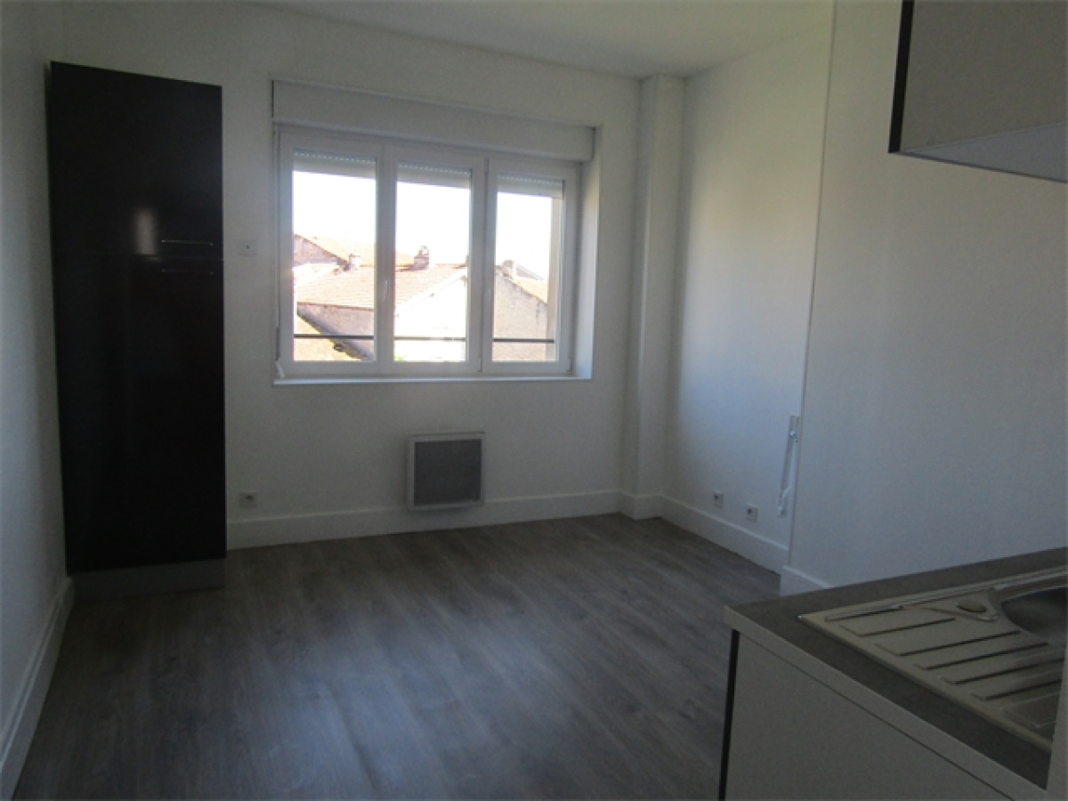 Aux portes de tous les commerces, face à la Place de la Mairie, F2 entièrement rénové avec cuisine équipée neuve au 2ième étage comprenant : entrée, cuisine séparée avec éléments, plaque de cuisson, hotte et four, séjour lumineux avec placards, salle d'eau avec toilettes, une chambre. Chauffage central gaz.