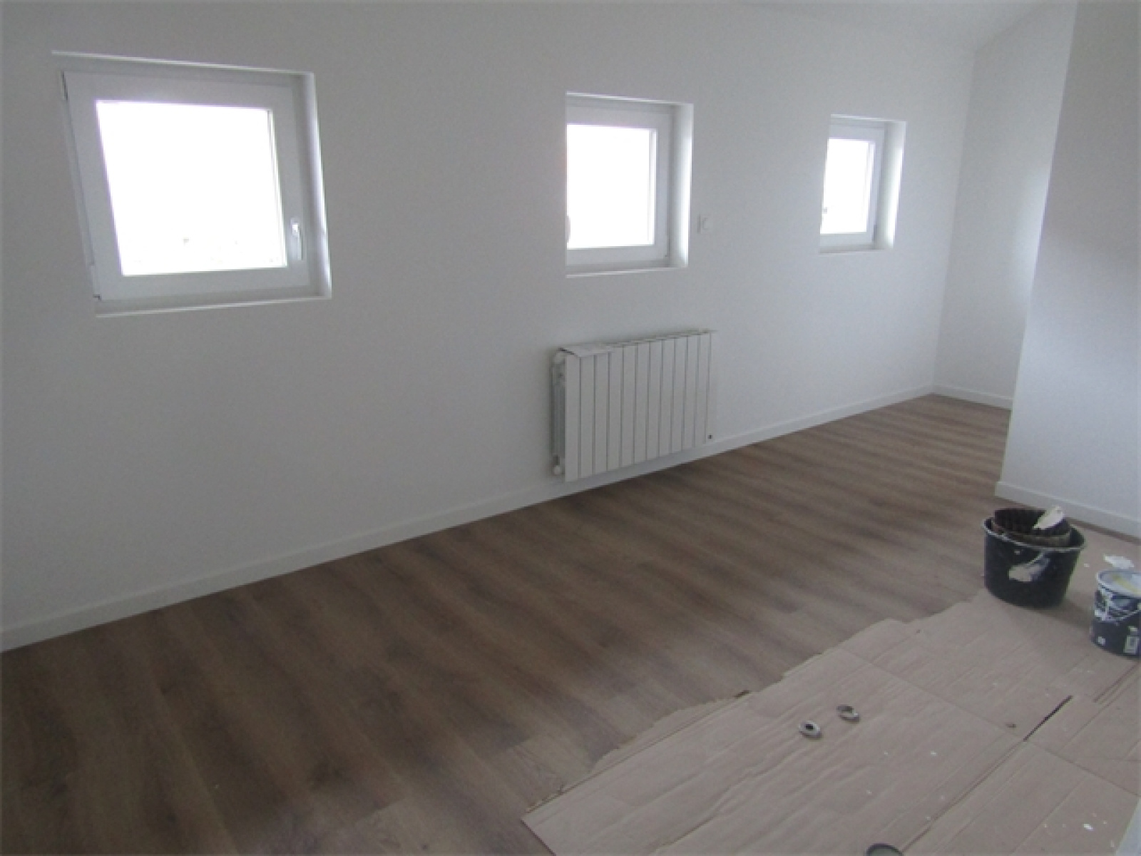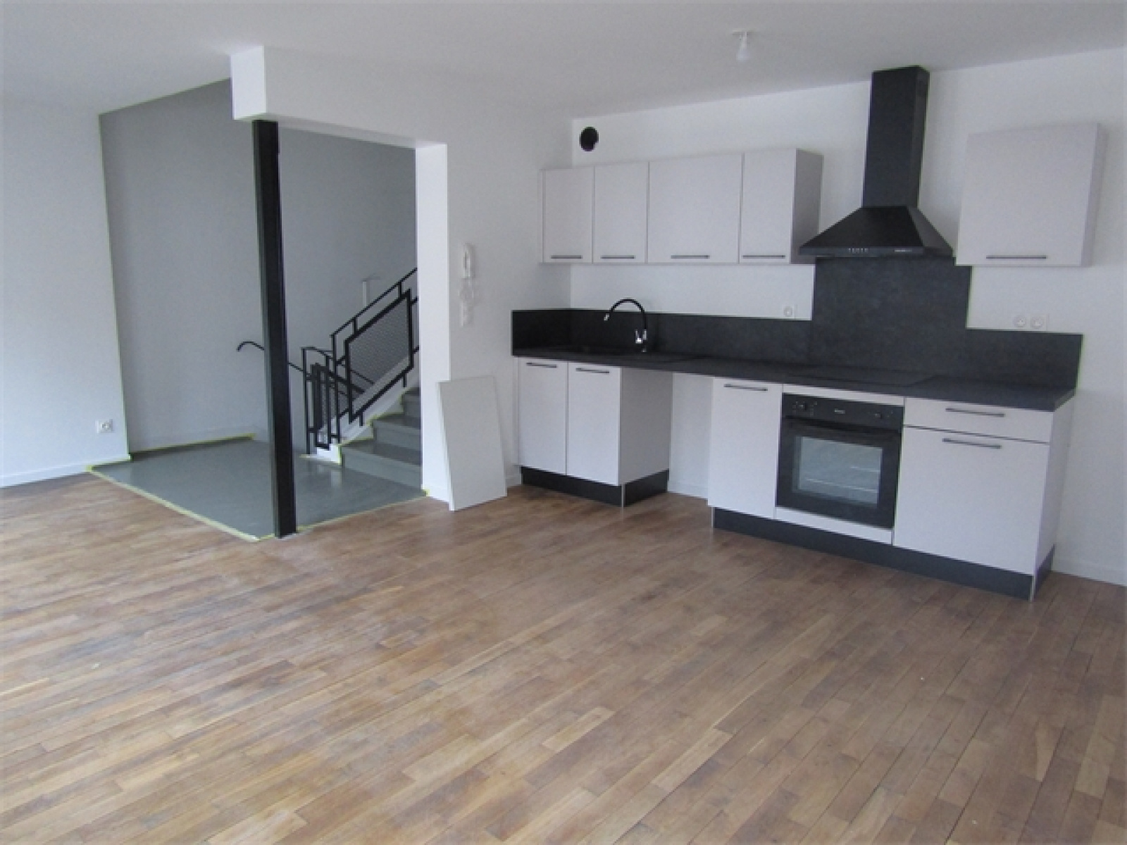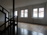 Pour les amoureux du style contemporain et industriel, beau F3 en triplex au 3ième et dernier étage d'un immeuble aux portes du centre-ville comprenant : entrée, cuisine équipée (hotte, plaque de cuisson, four, lave-vaisselle, mobilier de qualité) ouverte sur séjour. Au 1er étage, salon, toilettes, salle d'eau (douche) et petit cellier. Au 2ième étage, une grande chambre sous combles. Chauffage individuel électrique. Disponible mi Avril 2026