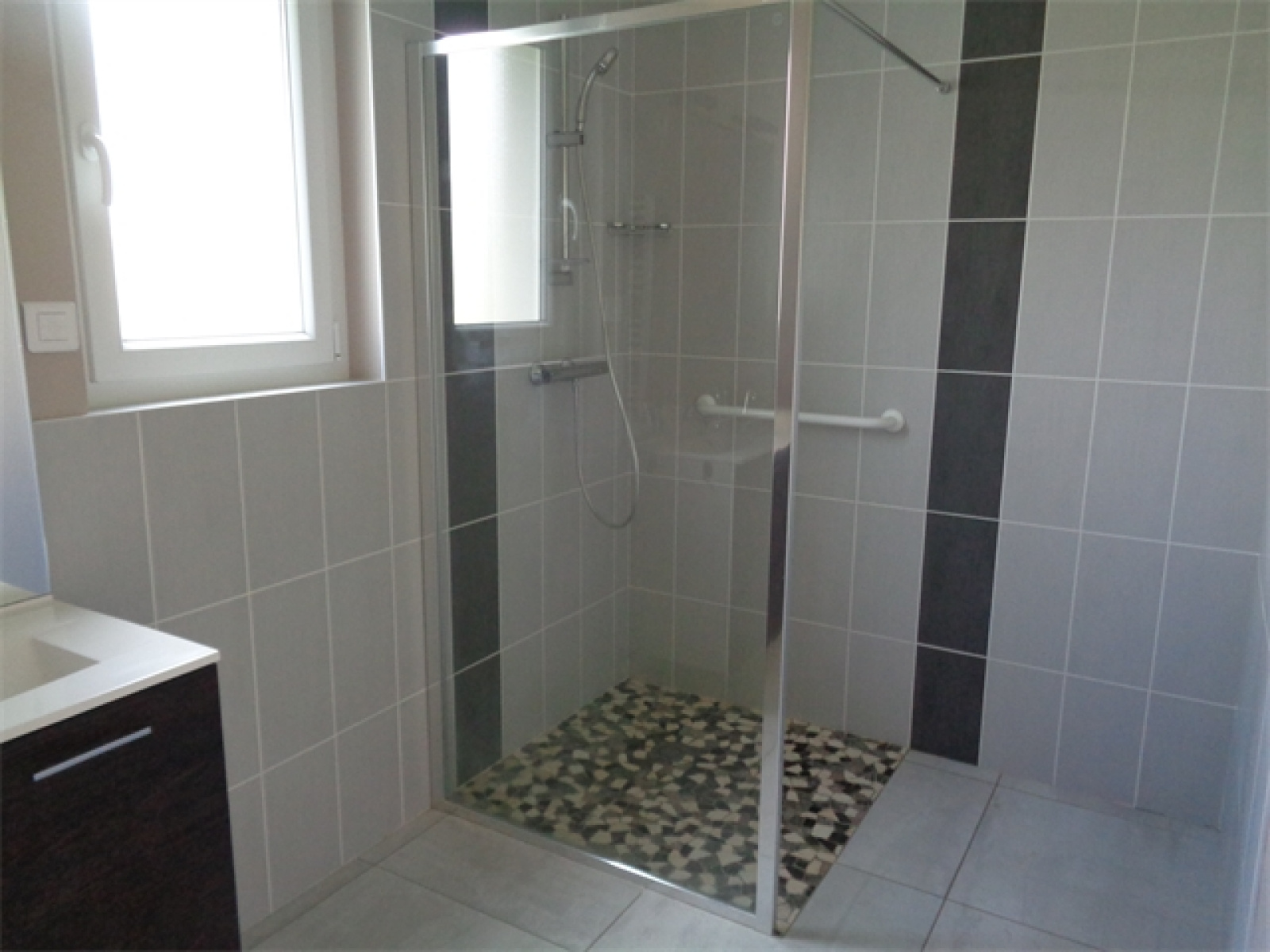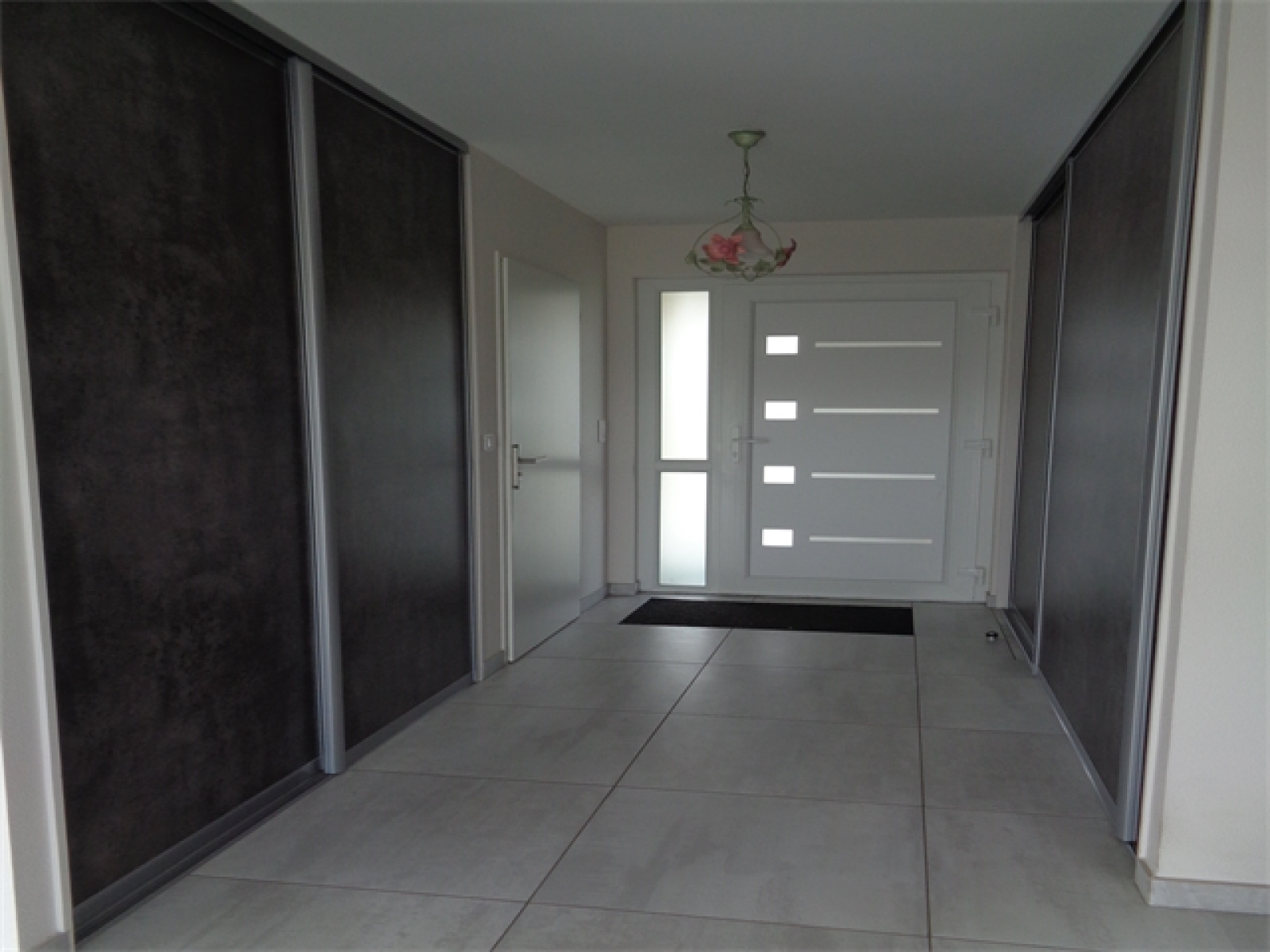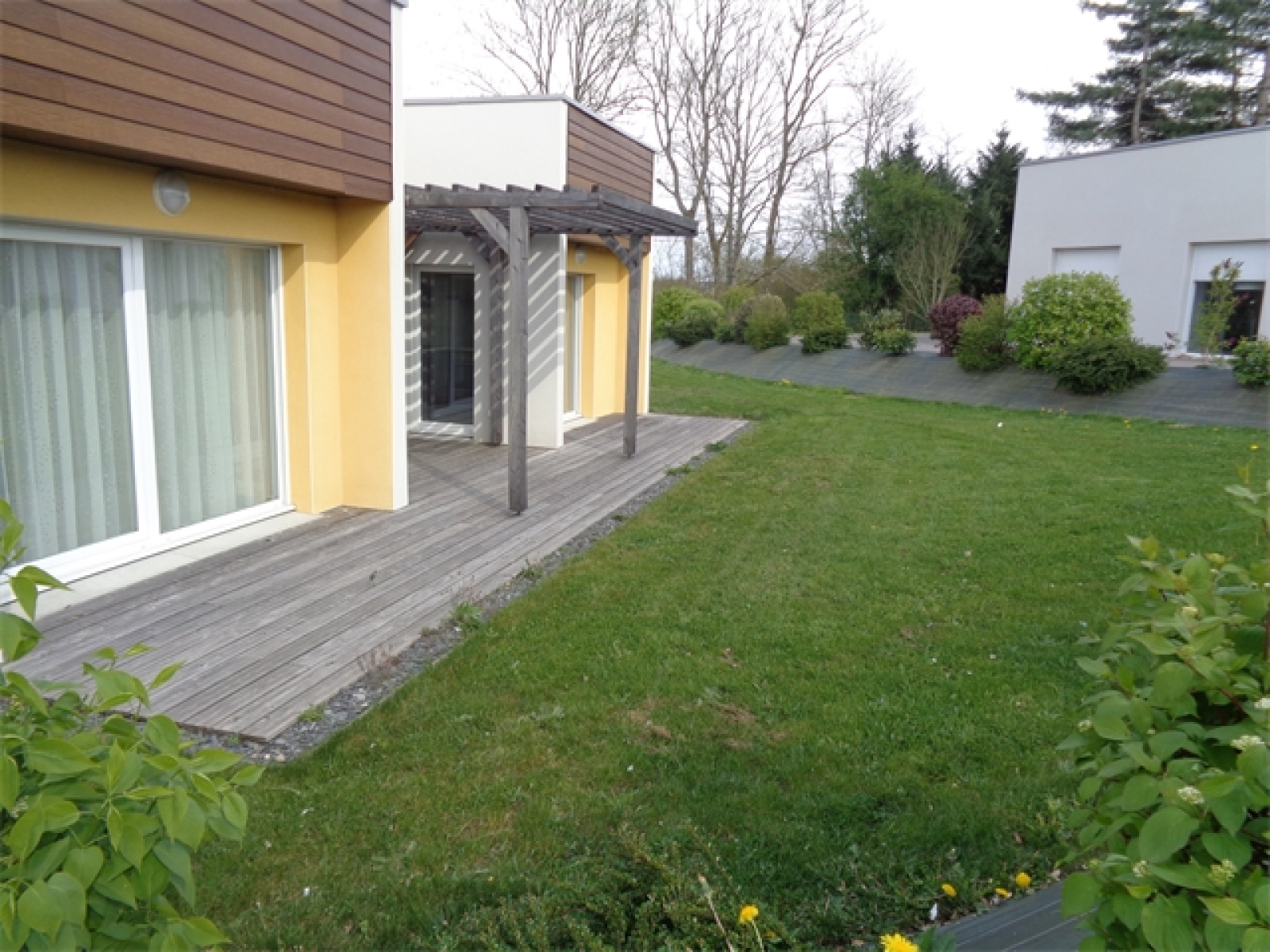 Beau pavillon indépendant de plein pied de 2014, propriété fermée avec portail électrique face au Supermarché LECLERC, comprenant : hall d'entrée avec grands placards, cuisine équipée (plaque de cuisson, hotte, four, mobilier) avec accès terrasse, grand salon-séjour lumineux avec accès terrasse ensoleillée, salle d'eau (douche à l'italienne), toilettes séparés, buanderie, 2 chambres dont 1 avec grand placard. Remise, carport. Chauffage central gaz au sol, belles prestations, terrasse et jardin. Disponible de suite ! Visite après dossier de candidature.