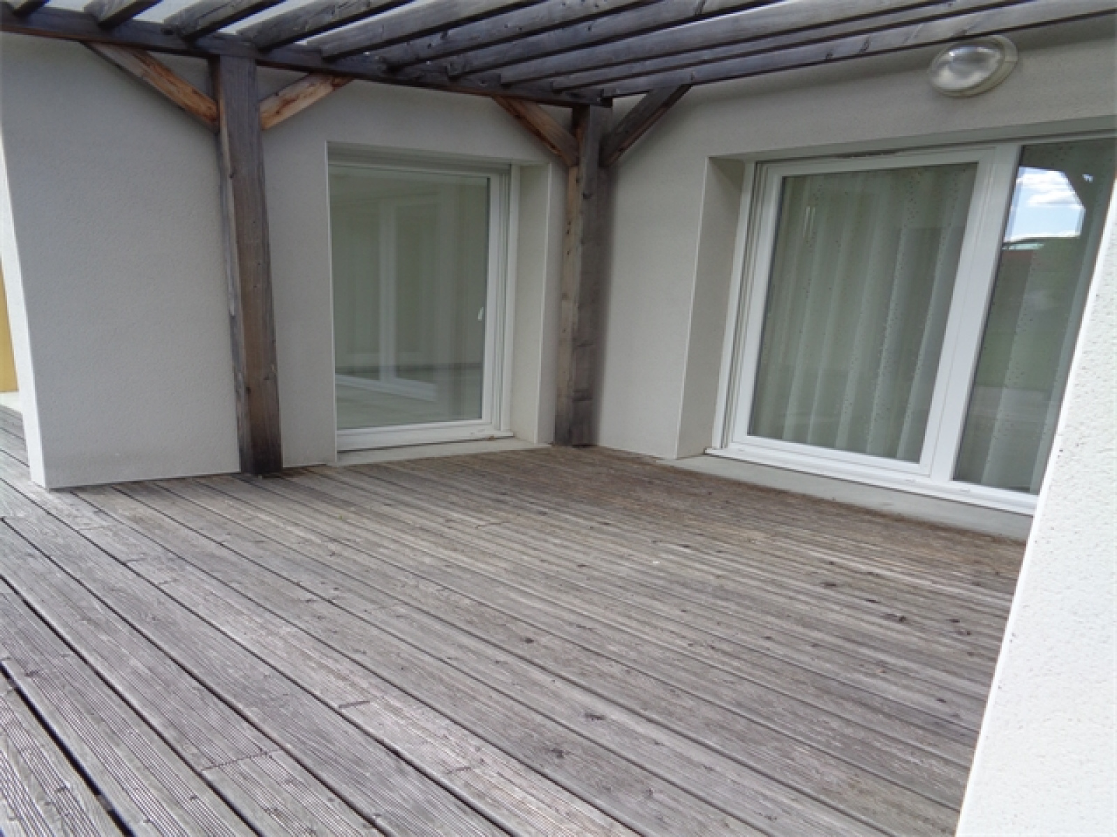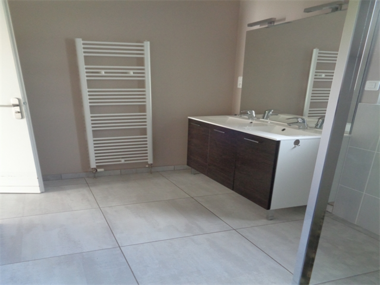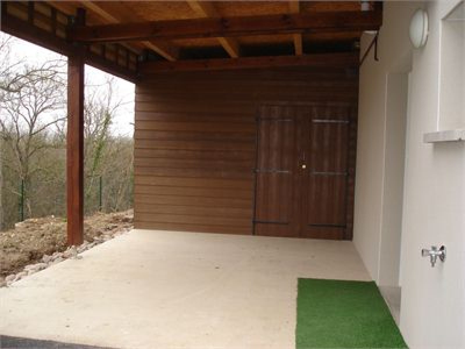 Beau pavillon indépendant de plein pied de 2014, propriété fermée avec portail électrique face au Supermarché LECLERC, comprenant : hall d'entrée avec grands placards, cuisine équipée (plaque de cuisson, hotte, four, mobilier) avec accès terrasse, grand salon-séjour lumineux avec accès terrasse ensoleillée, salle d'eau (douche à l'italienne), toilettes séparés, buanderie, 2 chambres dont 1 avec grand placard. Remise, carport. Chauffage central gaz au sol, belles prestations, terrasse et jardin. Disponible de suite ! Visite après dossier de candidature.
