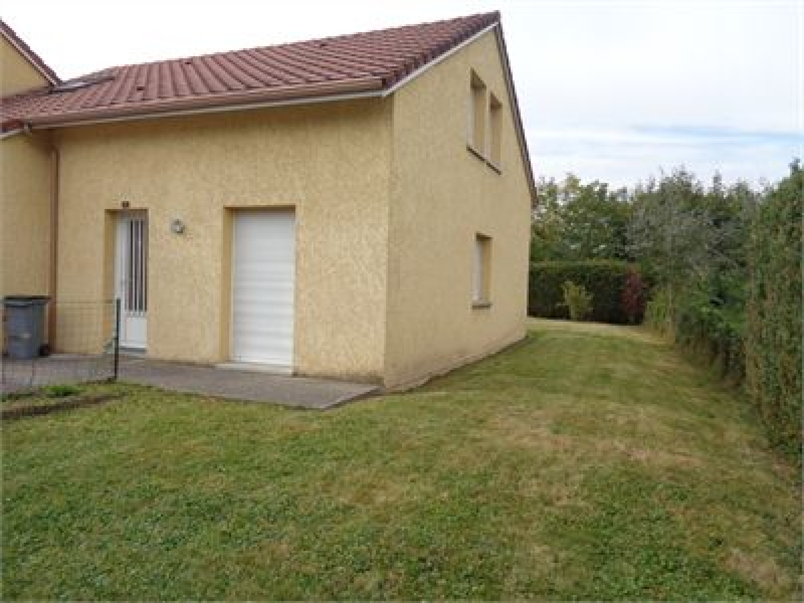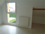 Situé dans une ruelle à sens unique dans lotissement au calme, pavillon mitoyen par le garage comprenant : entrée, cuisine ouverte (non équipée) sur saln et séjour avec accès direct sur le jardin et la terrasse, toilettes, accès garage. A l'étage, 3 chambres, salle de bain (baignoire) et toilettes. Chauffage central gaz. Disponible mi Juin 2026. Visites après réception des dossiers de candidature