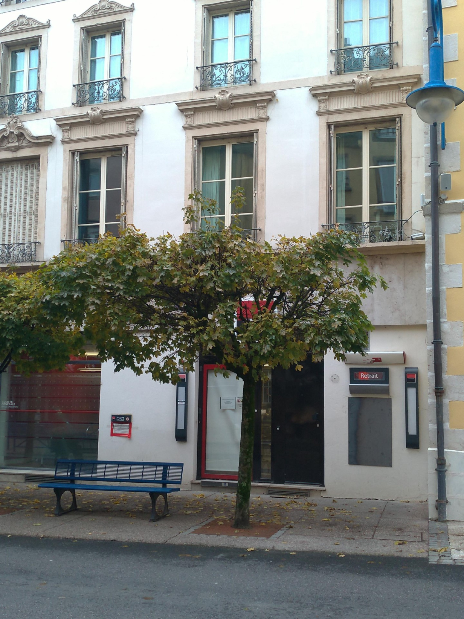Centre-ville, locaux commerciaux sur 2 niveaux précédemment occupés par la BANQUE SOCIETE GENERALE comprenant : Hall d'entrée et accueil, cellule ancien DAB, 6 bureaux, dégagement donnant accès aux sanitaires et cour intérieure, salle des coffres. Chauffage central gaz.