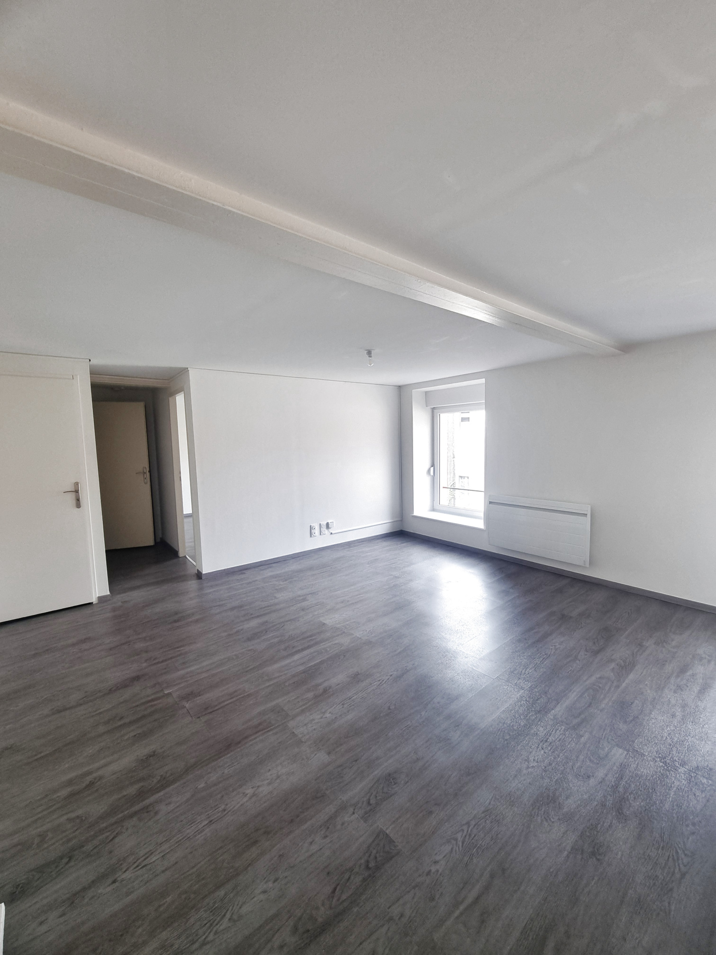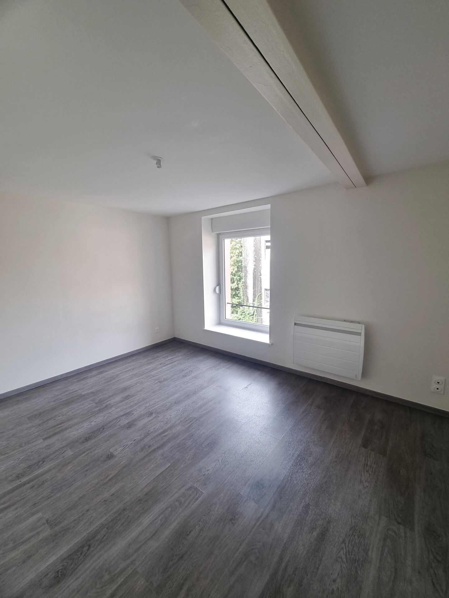 Appartement entièrement rénové et isolé comprenant : cuisine ouverte sur séjour, salle de bain (baignoire), toilettes séparés (sanitaires à l'état neuf), chambre. Chauffage individuel électrique récent. Disponible en août 2025