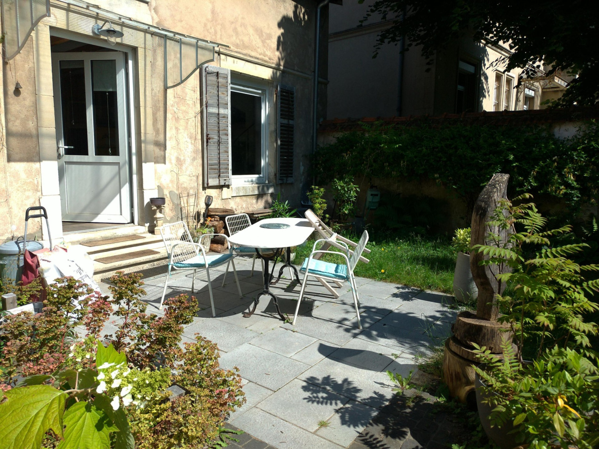 La campagne à la ville ! Magnifique havre de paix, cette petite maison en second corps de bâtiment d'une copropriété calme à quelques pas du parc Charles III, vous apportera sérenité et zénitude . Entièrement meublée et équipée, la cuisine vous offre tout ce dont vous avez besoin (électroménager notamment réfrigérateur, plaque de cuisson, lave-linge, cafetière etc.....), et le salon vous permettra de vous détendre devant une cheminée fonctionnelle. Vous accèderez à l'étage par le superbe escalier métallique offrant une salle d'eau d'eau avec toilettes (douche à l'italienne), où les rangements ont été parfaitement optimisés. Partie cocooning avec le bureau et la chambre en enfilade complètent ce bien d'exception. Vous profiterez du jardin totalement clos, de la terrasse et de la pergola attenante au soleil parmi les nombreuses plantations dont un noisetier et un splendide yucca. Dépendance, salon de jardin, arrivée d'eau à dispostion. Amoureux du bois et de la pierre, cette maison est faite pour vous ! Chauffage individuel électrique et cheminée bois. Disponible de suite.